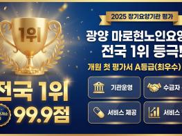 광양시 위탁시설인 마로현노인요양원이 국민건강보험공단 주관 '2025년 장기요양기관 평가'에서 전국 시설급여 기관 5,406개소 가운데 당당히 1위를 차지했다. 광양시는 마로현노인요양원이 최고점수인 99.9…