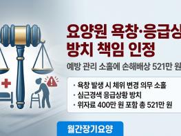 제주지방법원은 2019년 요양원 입소 후 욕창이 발생하고 심근경색 응급상황에서 신속한 조치를 받지 못한 수급자 A씨가 요양원 운영 법인과 시설장 등을 상대로 제기한 소송에서 원고 일부 승소 판결을 내렸…