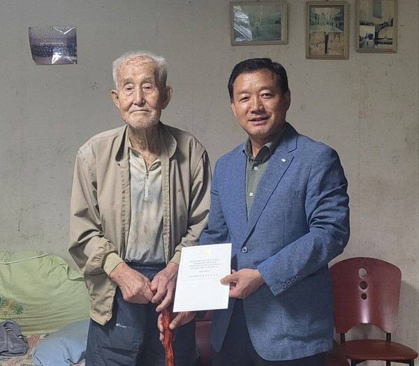 가평읍 행정센터, 100세 어르신 두가구에 장수지팡이‘청려장’ 전달