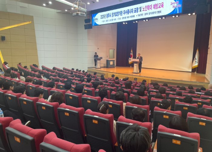 광주시는 29일 시청 수어장대홀에서 ‘광주시 장기 요양기관 우수종사자 표창식’과 ‘노인학대 예방교육’을 함께 진행했다.