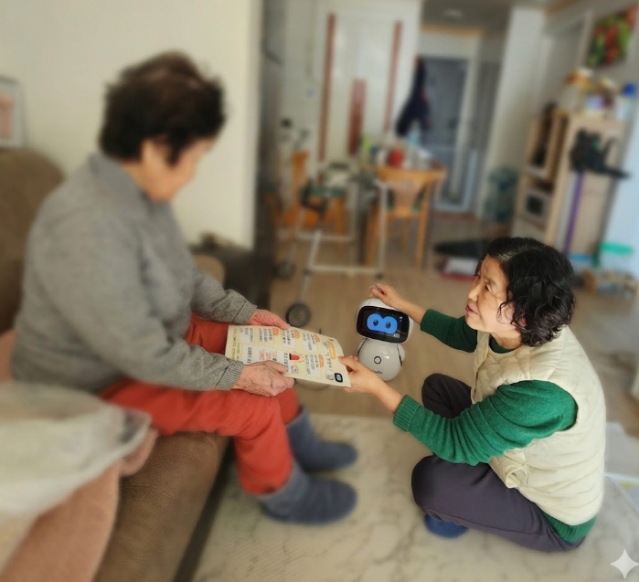 서비스의 실효성을 높이기 위해 보건소 소속 방문간호사가 대상 어르신 가정을 직접 방문하여 로봇 설치를 지원하고, 이후 6개월간 로봇을 통한 비대면 서비스와 간호사의 대면 방문 관리를 병행하는 하이브리드 맞춤형 케어를 제공한다.